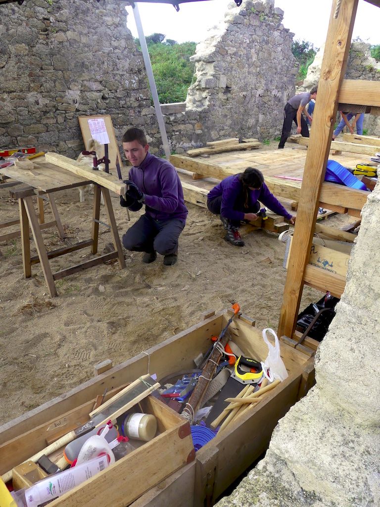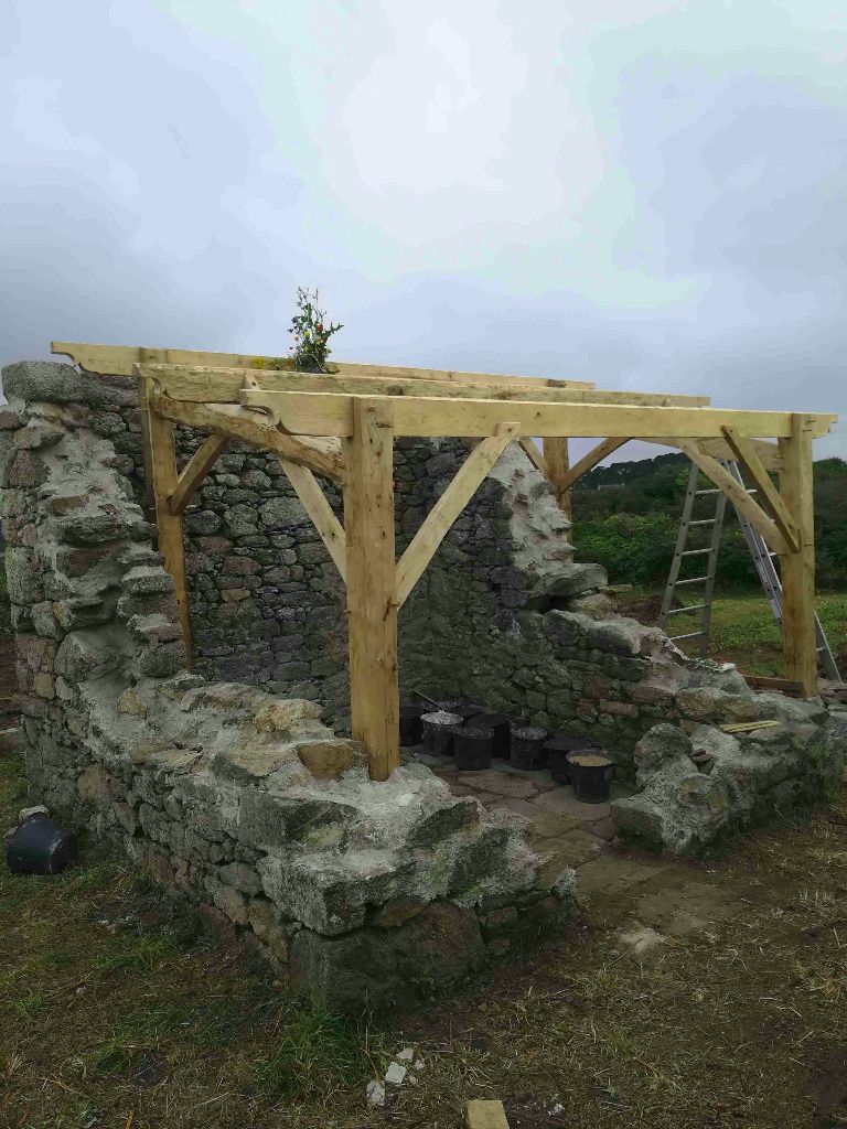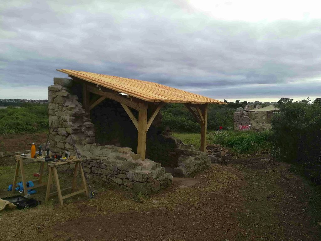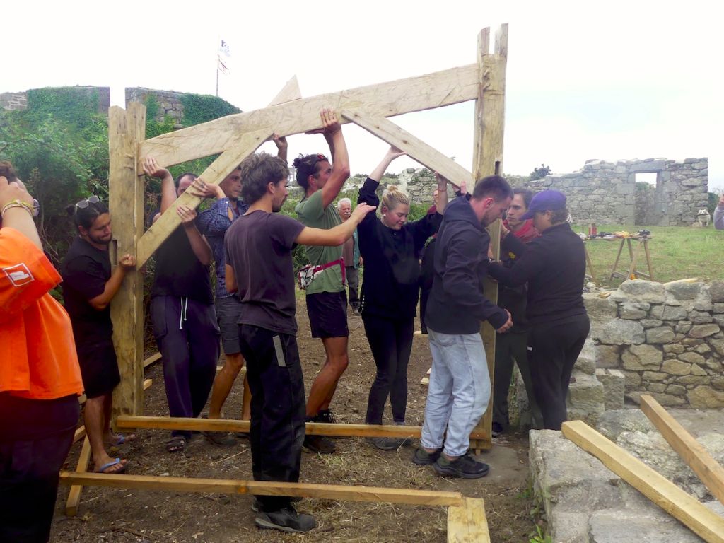 Le Fort Cézon se situe dans l'Aber Wrac'h, il accueille régulièrement des bénévoles lors de chantiers participatifs afin de rénover son patrimoine historique. Nous avons construit une charpente sur les anciennes latrines construites pendant l'époque napoléonienne.